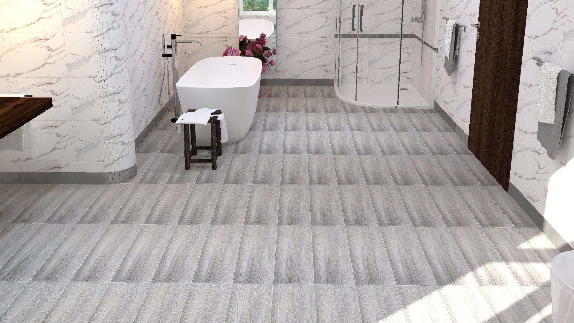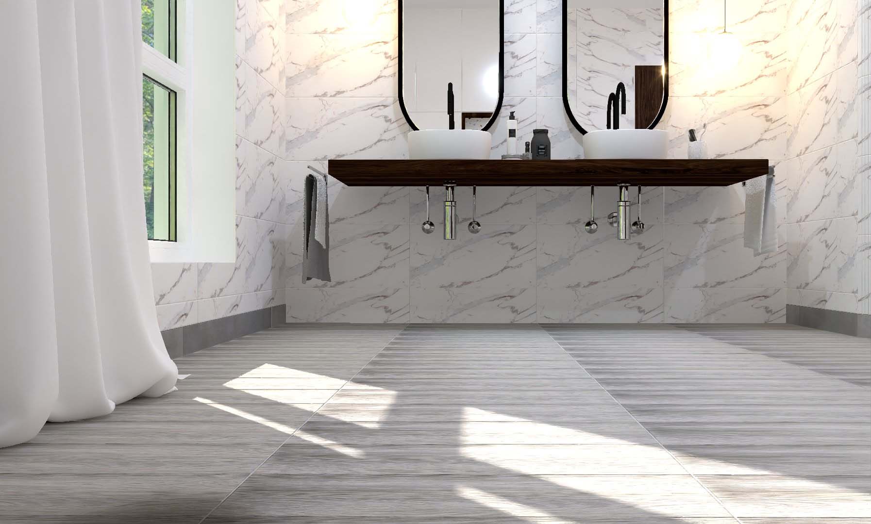 This high-quality wall tile, sized at 20×60 cm with a 1.0 cm thickness, is designed for modern interior applications. It features a laser-treated surface with a sophisticated matt finish, offering a clean and contemporary look. The random phase color variation adds natural visual depth and uniqueness to each installation. Each box includes 10 tiles, covering 1.2 m² and weighing 21 kg. With 26 boxes per pallet, it provides a total coverage of 76.8 m², making it an excellent choice for both residential and commercial wall projects.